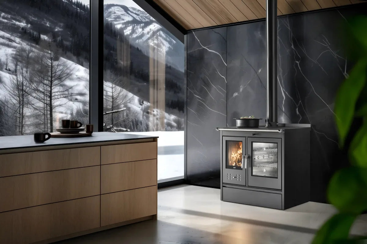 Ook in het dagelijks gebruik is de Star 90 praktisch uitgevoerd. De RVS handgrepen voelen degelijk aan, de grote voorraadlade biedt ruimte voor hout of accessoires en alles is ontworpen met duurzaamheid en gebruiksgemak in gedachten. De matte zwarte afwerking geeft de kachel een tijdloze uitstraling die zowel in een keuken als in een leefruimte goed tot zijn recht komt.