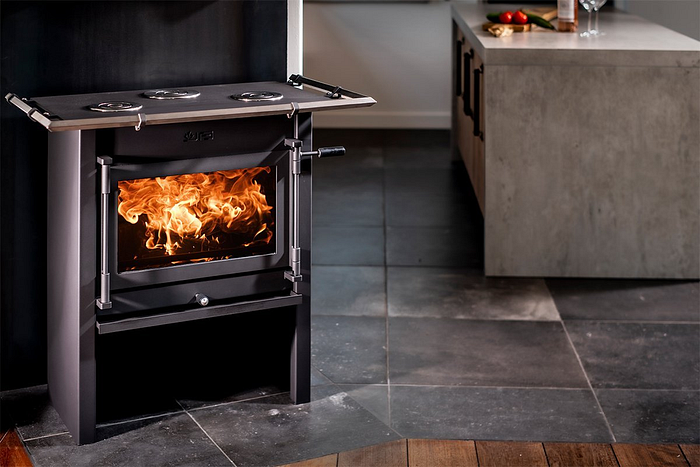 De JAcobus 12 kookkachel combineert sfeervolle verwarming met de mogelijkheid om op houtvuur te koken. Met drie kookpitten, beschikbaar wanneer u gebruikmaakt van de achteraansluiting, voegt deze kachel niet alleen warmte maar ook een unieke kookervaring toe aan uw woonkeuken, veranda of serre. Leuk om aan te vullen met een klassieke ketel of bakpan voor die echte houtkachelbeleving!