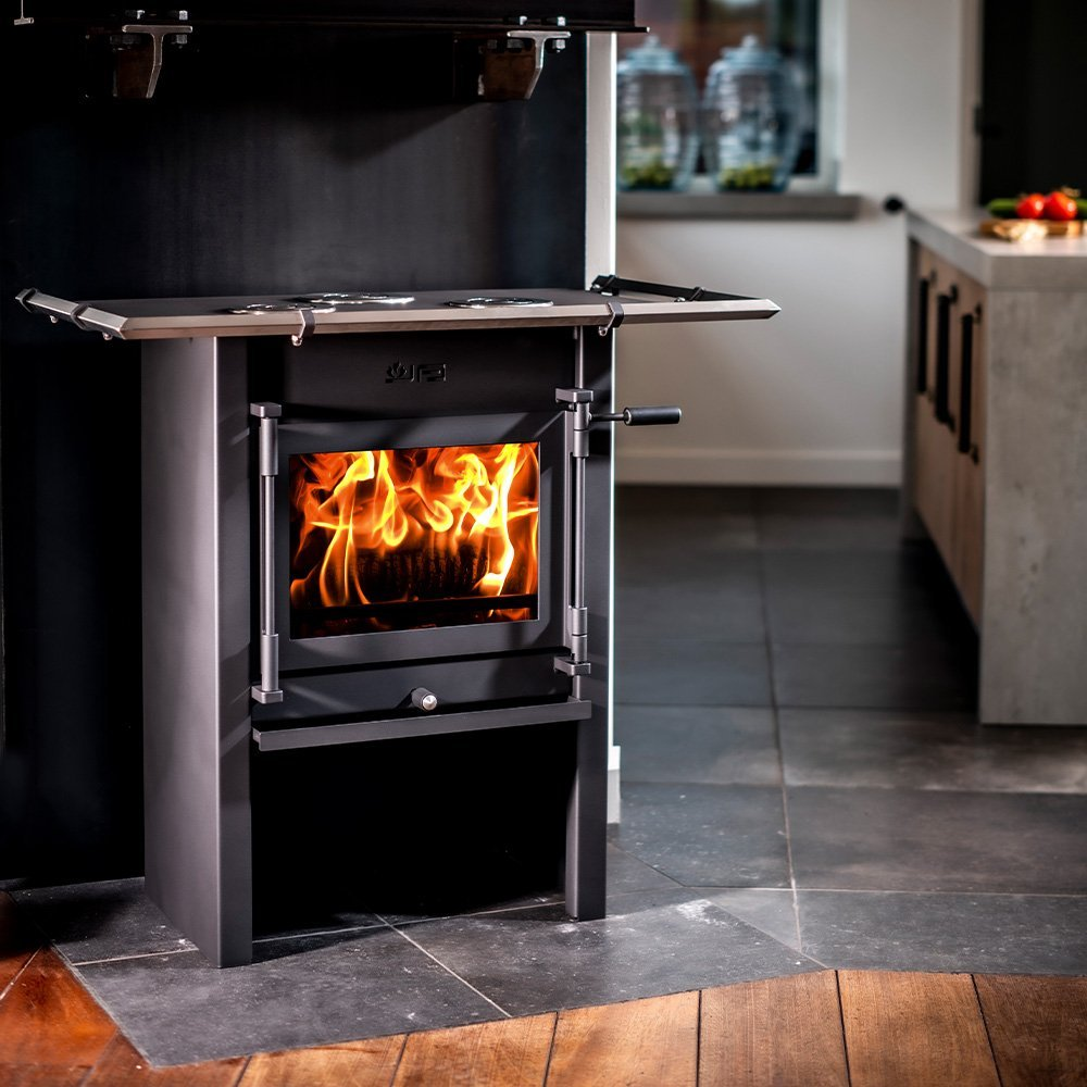 De JAcobus 9 kookkachel biedt een unieke combinatie van koken op houtvuur en het efficiënt verwarmen van uw woning. Dankzij de veelzijdige opties, het hoge rendement en de mogelijkheid tot hybride stoken, is dit een kachel die zowel praktisch als sfeervol is. Een echte aanwinst voor elke ruimte.