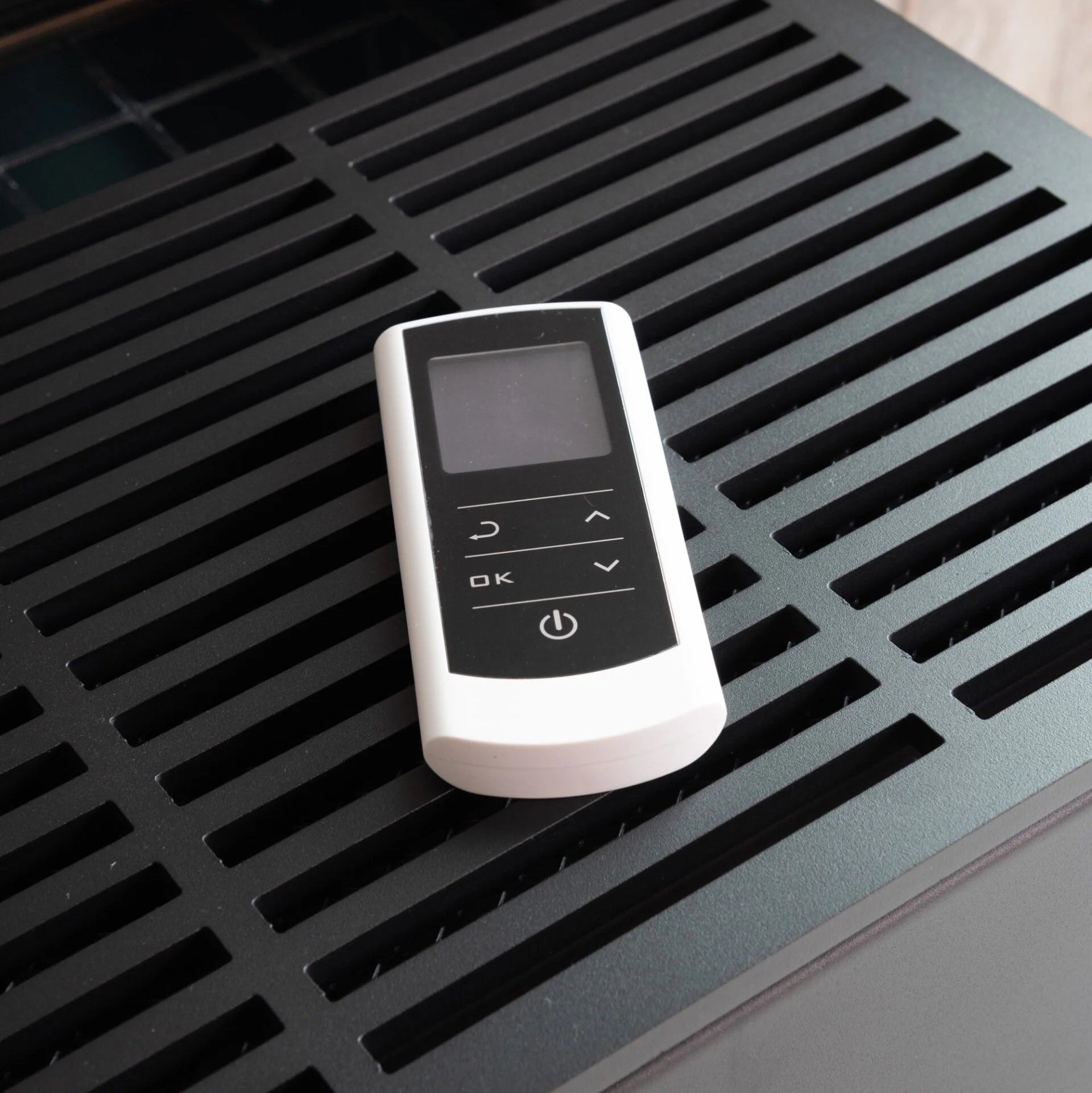 De afstandsbediening van de Kalor pelletkachel zorgt voor maximaal comfort en gebruiksgemak. Hiermee stel je eenvoudig de temperatuur in, pas je het vermogen aan en bedien je alle functies zonder op te staan. Dankzij de intuïtieve bediening heb je altijd volledige controle over je Kalor pelletkachel, waar je ook zit. Ideaal voor wie warmte, gemak en efficiëntie wil combineren.
