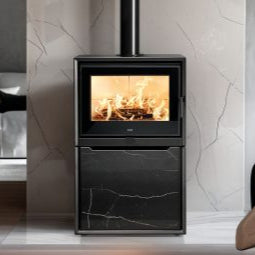 De Venus Plus is een moderne houtkachel met een solide uitstraling. Het robuuste stenen front geeft deze kachel een onverwoestbare look en maakt hem een blikvanger in elk interieur. Onder de branderruimte bevindt zich een handige opbergruimte met een afsluitbare deur, ideaal voor het opslaan van houtblokken.