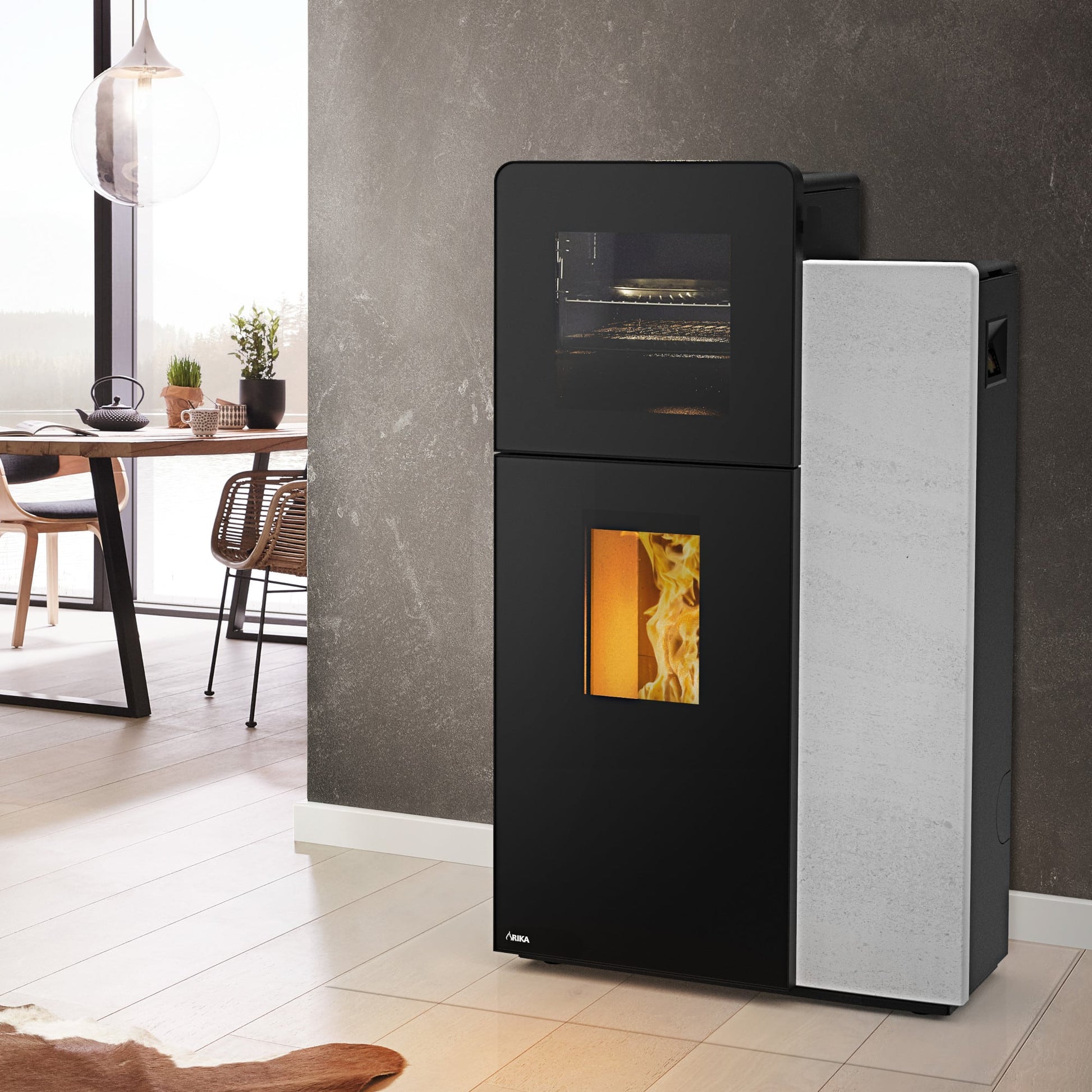 De Rika Domo Back combineert de efficiënte verwarming van een pelletkachel met de functionaliteit van een bakoven. Dit innovatieve ontwerp biedt niet alleen een sfeervol vlammenspel en comfortabele warmte, maar ook de mogelijkheid om uw favoriete gerechten te bereiden. Met een individueel regelbare temperatuur in het bakvak, eenvoudig in te stellen via het touchdisplay, krijgt u altijd perfecte bakresultaten.
