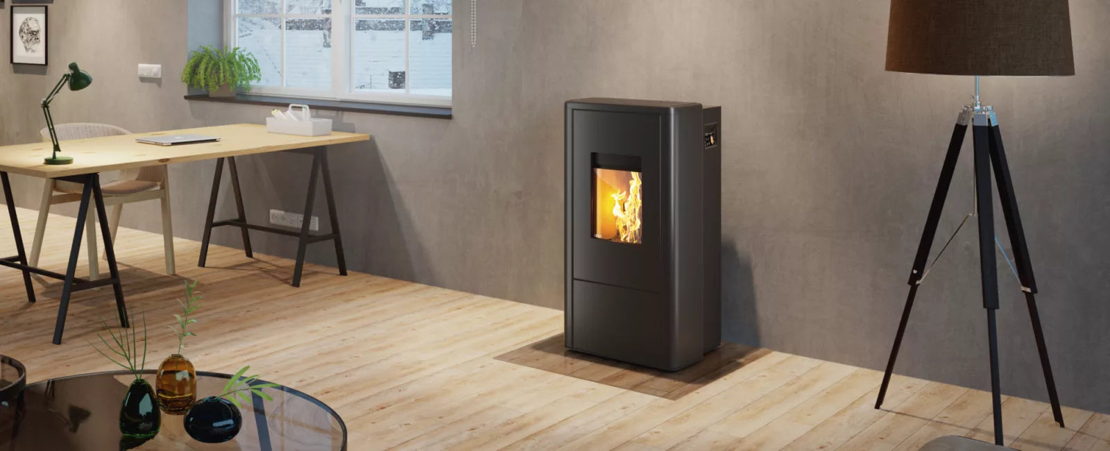 Een moderne pelletkachel met unieke uitstraling