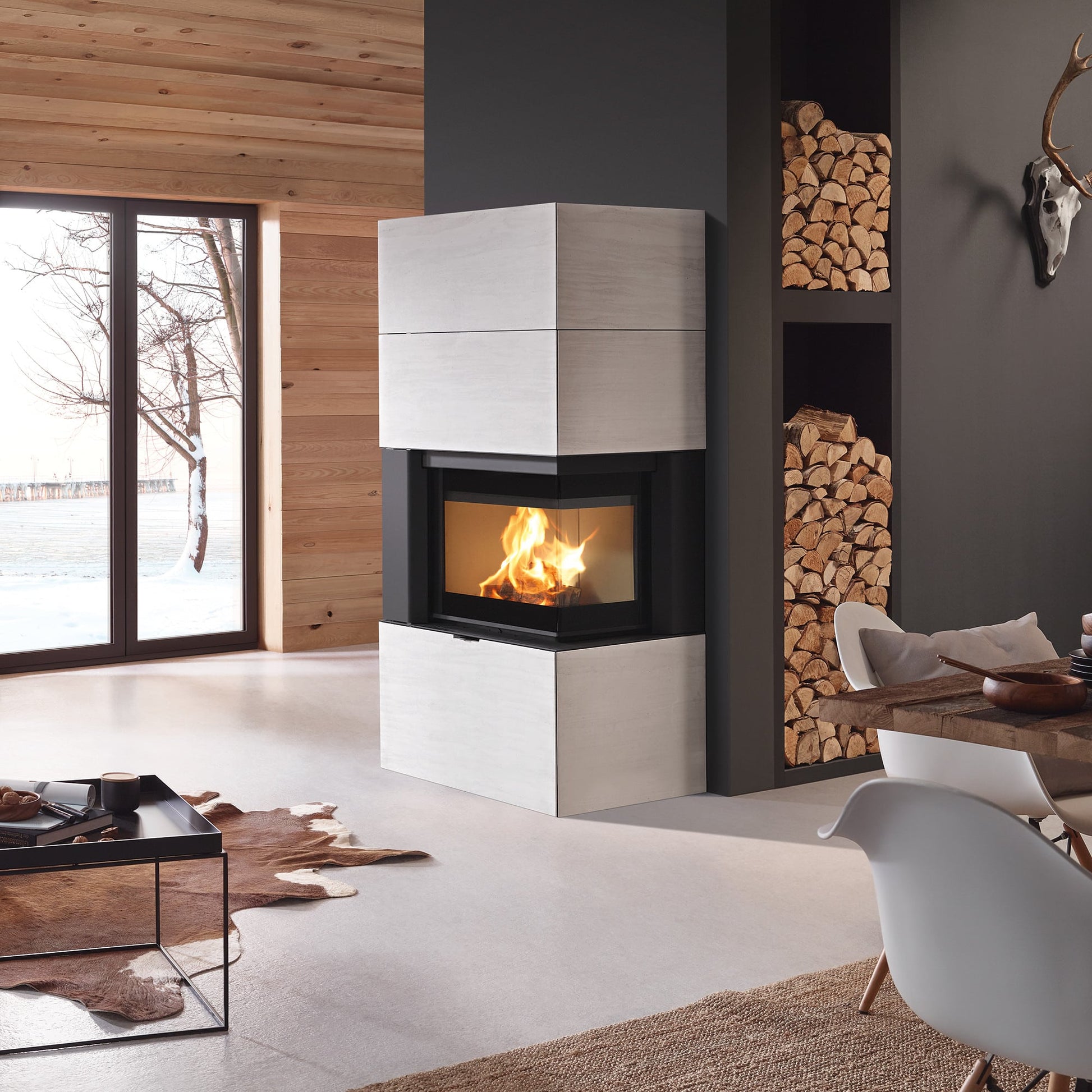 De RIKA SYMBIA is een kachel voor liefhebbers van stijl en ruimte. Met zijn panoramisch hoekvenster trekt hij onmiddellijk de aandacht en creëert hij een onvergetelijke beleving van vuur. Deze houtkachel vormt een elegant middelpunt in grote woonkamers en laat zien hoe geraffineerd eenvoud kan zijn.